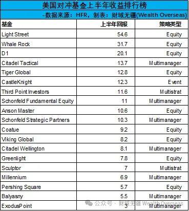 本文来源:财域无疆 Wealth Overseas,原文标题:《美国对冲基金上半年榜单:大牛市的烦恼,老虎系的反弹》