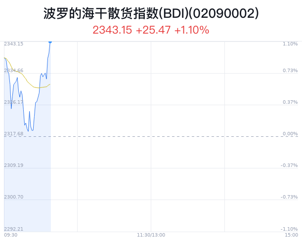 06月18日,波罗的海干散货指数(BDI)概念盘中拉升,截至10点08分,波罗的海干散货指数(BDI)概念整体指数上涨1.10%,报2343.150点。